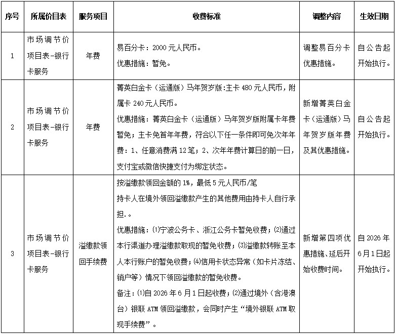 如您對上述收費項目調(diào)整有疑問,請致電咨詢我行信用卡24小時服務熱線:4000095574。